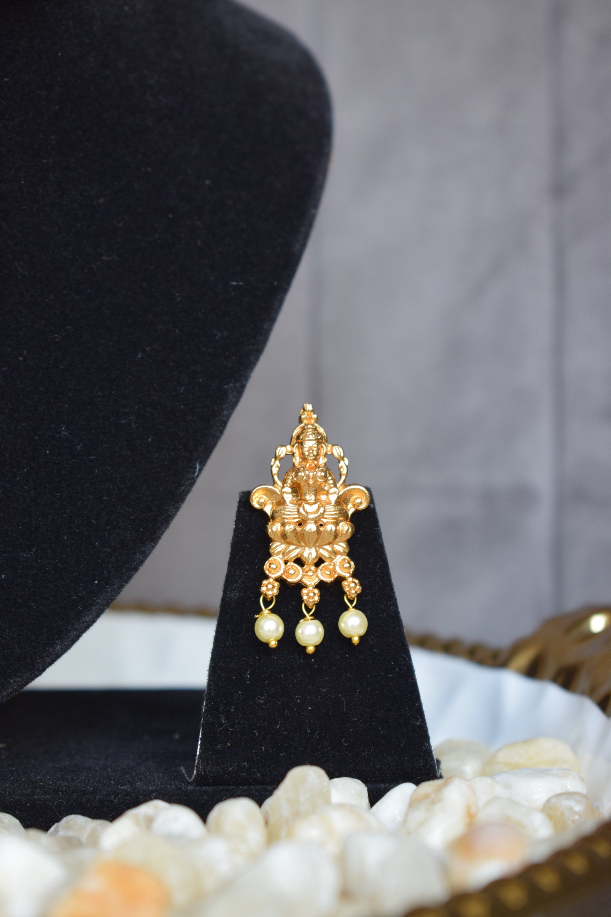 The Divine Lotus Necklace,With a central goddess motif framed by lotus-inspired ruby and emerald detailing, Padmavat embodies grace, prosperity, and devotion. A statement imitation jewellery piece for weddings, rituals, and festive occasions.